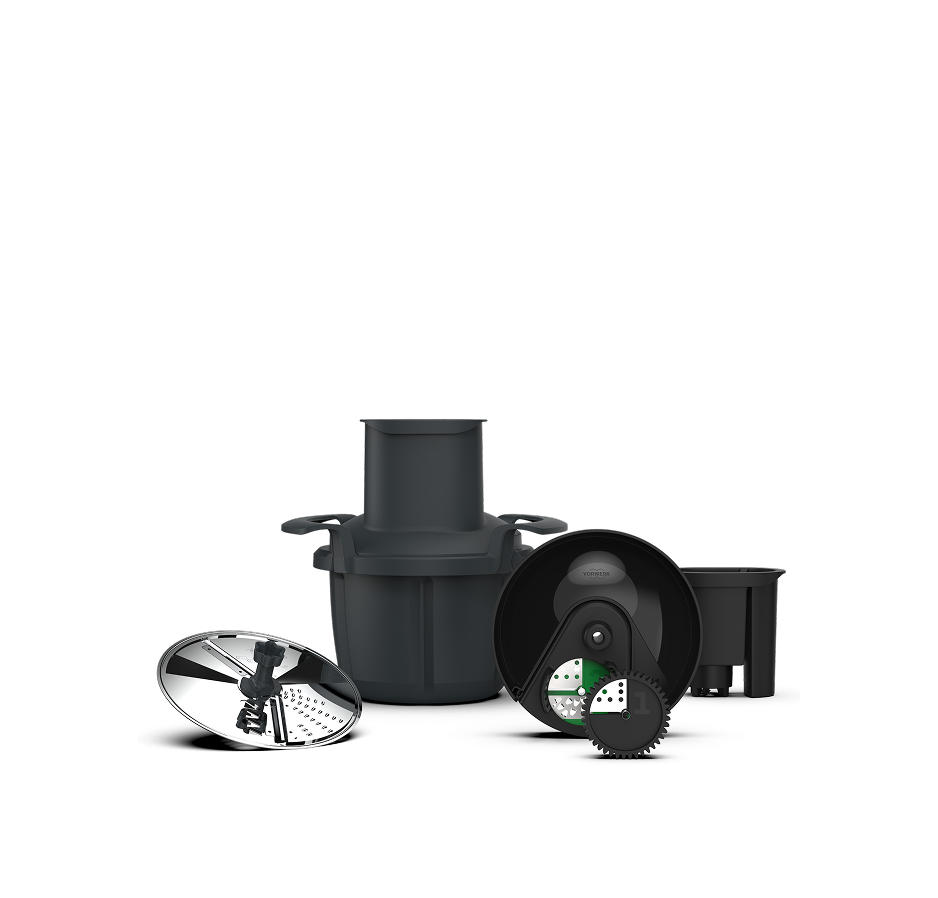 Turn fruits and vegetables into spirals in seconds with the Thermomix® Spiralizer. Just attach it to the Cutter and select Spiralizing Mode — no extra effort needed. Comes with thick and thin blades for different styles.